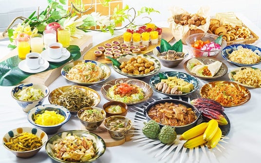 朝食部門で第1位を受賞した朝食ビュッフェは、Morning Grillでのビーフステーキや沖縄黒毛和牛とあぐー豚のハンバーグ、県産やんばるハーブ鶏のグリルチキンの食べ放題、沖縄そば、チャンプルー、タコライスに加え、沖縄名物ブルーシールアイスクリームなど沖縄の郷土料理をはじめ、多数のメニューをご用意しています。