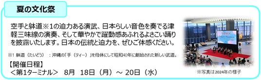8月は、浴衣の着装体験イベントに加え、関東圏の大学に所属する部活動、社会人サークルのご協力のもと、海外からのお客様に向けて、日本の伝統文化を紹介するパフォーマンスイベントを開催いたします。日本の夏を感じていただける ひとときを、ぜひお楽しみください。