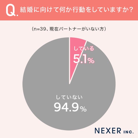 続いて「結婚願望があるが現在パートナーがいない」と回答した方に、結婚に向けて何か行動をしているか聞いてみました。