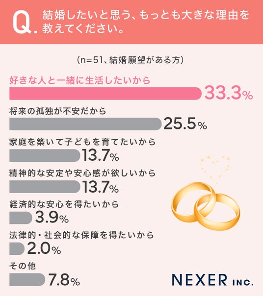 続いて、結婚したいと思うもっとも大きな理由を聞いてみました。