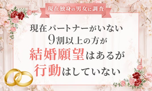 【現在独身の男女に調査】現在パートナーがいない9割以上の方が「結婚願望はあるが行動はしていない」