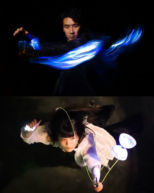 ジャグリングとプログラミングされた光が組み合わされたマルチメディアジャグリング。ディアボロという駒の要素を持つジャグリング道具を用いて、それらの特性を拡張した、光や音などさまざまな表現で体感して頂くコンテンポラリーサーカスパフォーマンスです。空中を飛び交うディアボロと六本木の空間とを繋ぐ作品をお楽しみください。