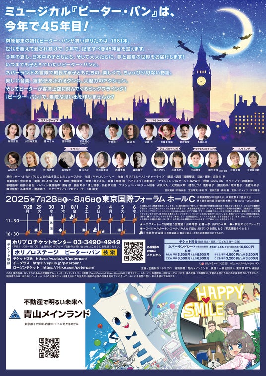 株式会社青山メインランド、45周年を迎えるホリプロ主催ミュージカル『ピーター・パン』に今年も特別協賛