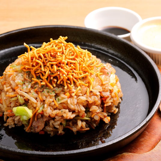 ご飯と焼きそばを鉄板で炒める、ご当地B級グルメの“そばめし”をベビースターラーメンで!豚肉と野菜の旨味がしみ込んだ、間違いナシのおいしさ!