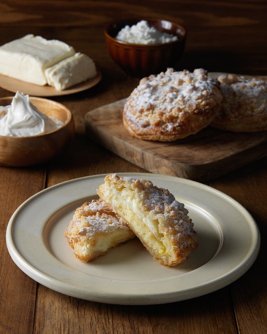 仕上げには香ばしいメープルとクランブルをトッピング。ザクザク、サクサクとした軽やかな食感と、チーズやカスタードが織りなす豊かなハーモニーをお楽しみいただけます。