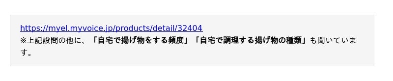 揚げ物を食べる状況や自宅で調理する状況などについて聞いています。調査結果をお知らせいたします。