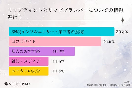 では、彼女たちがどうやって「使い分け」や「カスタマイズ術」を知っているのかを探るべく、「リップティントとリッププランパーについての情報源は?」と聞いてみました。