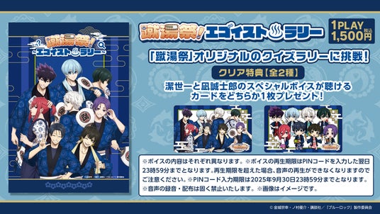 本イベントでは、潔 世一ほか計8名の描き下ろしイラストが登場いたします。「祭」をテーマにした衣装に身を包んだキャラクターたちは必見です。加えて、温泉コラボにちなんだ浴衣姿の描き起こしミニキャライラストも登場。本イベントでは、コラボのイラストを使用したオリジナルグッズやコラボメニューの販売はもちろん、体験型のミニゲームやラリー、コラボ仕様のプレミアムラウンジもご用意しております。さらに、イベントをよりお楽しみいただけるように特典付きコラボ入館券も発売いたします。温泉とお祭りの熱気あふれる祭の湯で、「エゴい旅」をぜひお楽しみください!皆さまのご来館をお待ちしております。