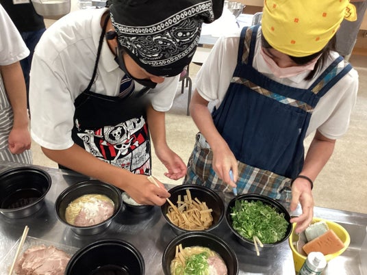 今年は、京都府立八幡支援学校高等部 普通科2年生と協同事業として、生徒とともに竹林にて幼竹を採取し、同校の調理室で細かく刻み、茹でて塩漬けにする下拵えを実施。その後、2ヶ月の塩蔵期間を経て国産メンマが完成しました。7月17日には、代表の久保田が講師となり、生徒が「キラメキノトリ」の主力商品である鶏白湯らーめんを調理し、完成した京都産メンマをトッピングして試食する会を開催。参加した生徒からは、「自分たちで収穫した地元の竹がラーメンになるのがうれしい」「メンマづくりの大変さは想像以上だった」などの感想が寄せられました。