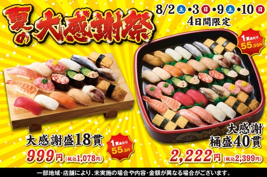 大盤振舞いでお客さまを笑顔にする、お得感満載!!小僧寿し『夏の大感謝祭』!!