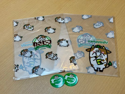 8月1日現在、渋谷餃子の各店にて、わさビーフの限定ノベルティ(A4クリアファイル&ミニステッカー)を先着順でプレゼントしております。わさビーフ餃子をご注文頂いた方にはいずれか1品、加えてその他のコラボ商品をご注文頂いた方には両方プレゼントいたします。