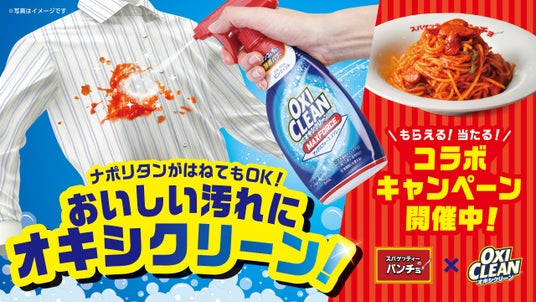 洗剤ブランド「オキシクリーン」を販売する株式会社グラフィコ(代表取締役:マイケル・リード)は、株式会社パンチョ(本社:東京都武蔵野市、CEO:野尻圭介)が運営する「スパゲッティーのパンチョ」とコラボし、2025年8月1日(金)より「おいしい汚れにオキシクリーン!キャンペーン」を一部店舗・SNSにて実施します。さらにYouTube動画でも、オキシクリーンの“中の人”とパンチョの“パンチョ大王”によるシミ撃退ムービーも公開します。
