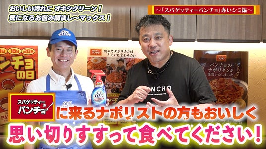 「スパゲッティーのパンチョ」と「オキシクリーン」が初のコラボ!ナポリタンを思いっきりすすろう!飛び跳ねてもオキシクリーンにおまかせ