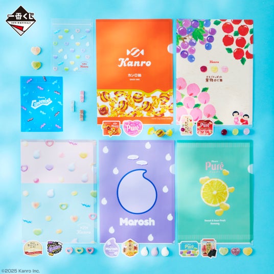 カンロ飴やピュレグミなどでおなじみのカンロ株式会社(本社:東京都新宿区、代表取締役社長 村田 哲也、以下カンロ)の飴やグミが、株式会社BANDAI SPIRITS(本社:東京都港区、代表取締役社長 榊原 博)が発売するハズレなしのキャラクターくじ「一番くじ」になって新登場。「一番くじ カンロ ピュレグミ ~sweet gummy&candy~」(メーカー希望小売価格1回730円(税10%込))が、2025年8月8日(金)より順次発売されます。