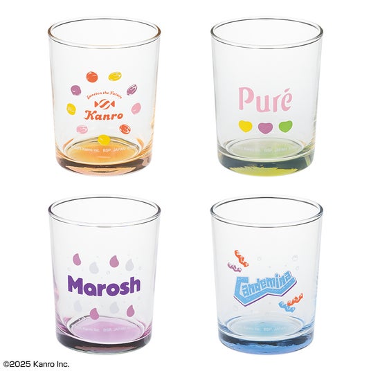 A賞は〈ピュレグミプレミアム〉のようなグミ粒の中が光るシリコン製のライト。B賞は〈ピュレグミ〉デザインの透明感がかわいらしいウォーターポット。C賞には、メッシュ素材で小物やお菓子を入れるのにちょうどいいサイズのポーチ、D賞にはグミ粒がお菓子の袋の中で動く様子を再現したシャカシャカカードケースがラインナップ。ボールチェーンが付属しており、トートバッグなどに付けられます。E賞は底面にそれぞれクリアカラーが入った夏にぴったりの涼しげなグラス。〈飴グミアソート〉〈ピュレグミ〉〈マロッシュ〉〈カンデミーナ〉の全4種です。その他にも、「ラバーチャーム」、「ラバータイ」、「マーカーフィギュアチャーム」の中から選ぶことができるラバー雑貨コレクションや、「クリアファイル+ステッカー」5種、「ジッパーバッグ」2種から選ぶことができるステーショナリーコレクションがラインナップされています。いずれもカンロのカラフルなキャンディやグミの透明感を楽しめるアイテムです。