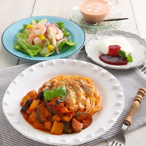 8月の料理コースバリエーションクラスCメニューで1食120g以上、野菜たっぷりメニューを伝授します。