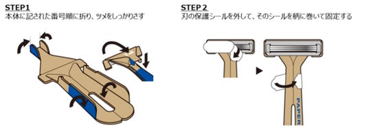 「紙カミソリ(R)」は使い捨てカミソリ国内シェアNo.1※1の貝印が、グローバル刃物メーカーとして長年培った知見を最大限に活用し、ハンドルに紙、刃体(ヘッド全体含む)に金属を使用することでカミソリを脱プラスチックなアイテムとして開発。