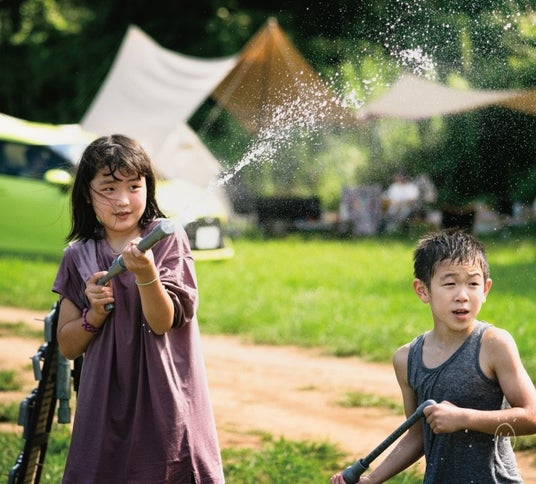 水鉄砲や水風船、ミニプールなど、ゾーンの中にある道具で水遊びを楽しもう!