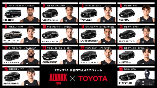 またアルバルク東京では2020-21シーズンより、選手ごとにTOYOTA車名ロゴを背面にプリントする、各選手の個性と車を掛け合わせた取り組みを行ってまいりました。