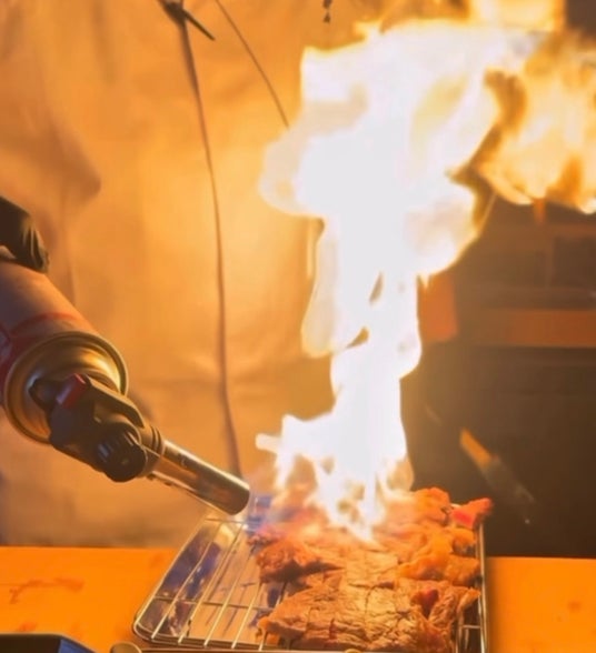 国産和牛の炎パフォーマンス。