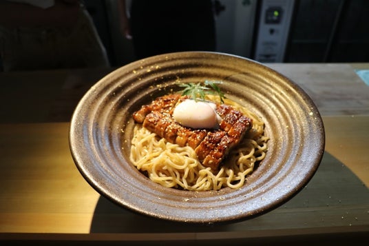 鰻と温玉のまぜそば金粉のせ