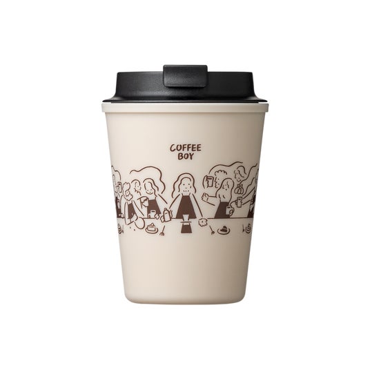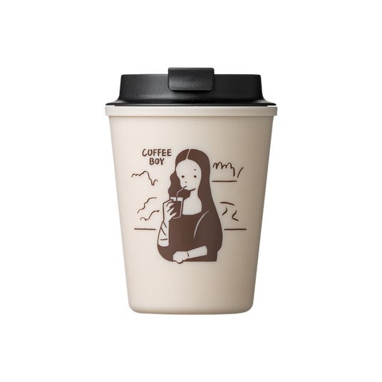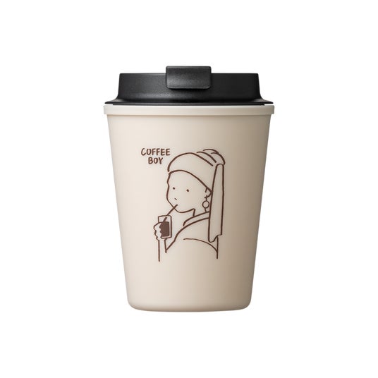 「真珠の耳飾りの少女」(フェルメール)や「モナリザ」「最後の晩餐」(ともにレオナルド・ダ・ヴィンチ)──名画の登場人物たちが、コーヒー時間にお付き合い。テイクアウトカップ風の軽やかなルックスに、ダブルウォール構造を採用。ホットコーヒーを入れても熱くならず、アイスは結露しにくい。快適な使い心地がうれしいタンブラーです。
