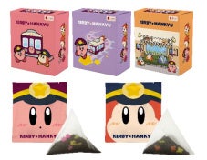 「星のカービィ×阪急電車」オリジナルデザインのパッケージに入ったフレーバーティーです。アップルティーとオレンジアールグレイティーの2種類で、茶葉の中にはキャラクターをイメージした金平糖を加えています。