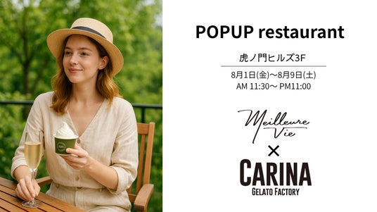 2025年8月1日に販売開始した新たなるシャンパンブランド"Meilleurevie"(ミラヴィ)が販売開始にあわせ、1987年に目黒にて創業を開始したジェラート"CARINA"と虎ノ門ヒルズ横丁3F、POPUPレストラン内にてPOPUPを行っている。期間中はダイアモンドのネックレスのプレゼント企画などもあり、盛り上がりが期待されている。
