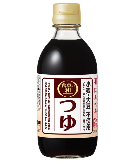 株式会社にんべん(東京都中央区、代表取締役社長 高津伊兵衛)は、小麦・大豆不使用調味料「四穀シリーズ」を、特定原材料等28品目不使用対応の「食卓の和 小麦・大豆不使用つゆ」「食卓の和 小麦・大豆不使用白だし」「食卓の和 小麦・大豆不使用ぽん酢」として、2025年9月1日(月)に全国でリニューアル発売いたします。既存品「四穀シリーズ」の販売実績が好調であることを受け、味わいはそのままに、醤油の代わりに使用していた「四穀しあわせ醤油(ごま・あわ・ひえ・きび使用)」を、そら豆と食塩で造った醤油風調味料「そら豆醤油」に変更しました。これにより、特定原材料等28品目不使用となり、家族みんなで安心して同じ食卓を囲んでいただける仕様にリニューアルしました。