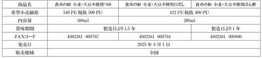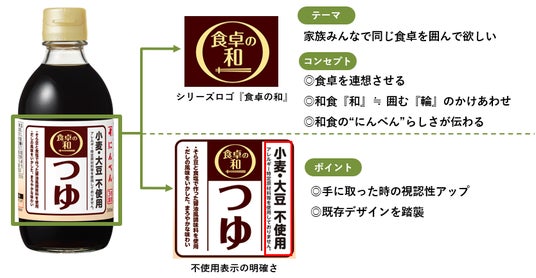 アレルギー配慮調味料で味わいそのまま、全面リニューアル 「食卓の和 小麦・大豆不使用つゆ/白だし/ぽん酢」9月1日発売 特定原材料等28品目不使用、家族みんなで同じ食卓を!
