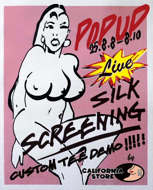 秋山孝広氏が手がける “エロ” をモチーフにした遊び心あふれるグラフィックを、その場でシルクスクリーンプリントにてカスタム制作するPOP UPイベントを開催します。
