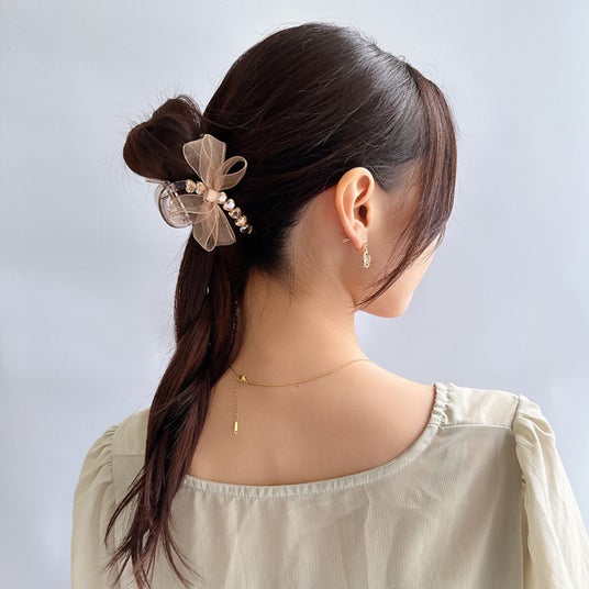 商品名: シアーリボン&ハートストーンバンスクリップ