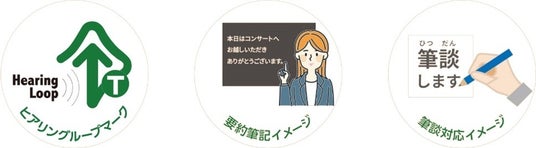 昨今の補聴器技術の進歩により、補聴器は見た目も性能も目覚ましく進化しています。以前コンサート会場などで起こりやすかった、ハウリングもハウリング抑制システムなどにより発生しにくくなっています。しかしながら、こういった技術をうまく活用されていない場合ハウリングが発生することもあるため、コンサート会場ではハウリングへの配慮についてアナウンスを入れているケースも少なくありません。この注意喚起が補聴器ユーザーに「他の人の迷惑になるかもしれない」と過度なプレッシャーを与えてしまうことがあり、コンサート会場から足が遠のく方も一定数いらっしゃるようです。本コンサートでは、音のバリアだけでなく、心のバリアである「気遣いする気持ち」も取り除けるように、一般的なハウリングの注意喚起に関するアナウンスを流していません。代わりに、もしハウリングが起こっても周囲は温かく見守り、優しく教えてあげてほしいとアナウンスをしています。当日は、補聴器ユーザーをはじめ、聞こえに悩みを抱える方々も心地よく参加できるよう、情報保障として、下記を導入しています。