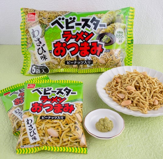 酷暑到来!”ツーン”と爽やかなわさびの刺激がたまらない「ベビースターラーメンおつまみ(わさび味)6袋入」期間限定発売