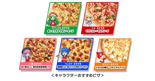 「ほっくりポテマヨソーセージ」、「ピザハット・マルゲリータ」、「炭火香ばしい 鹿児島県産黒豚ピザ」、「青森県産にんにく香る 牛ハラミの角切りステーキピザ」、「とろける4種チーズのフォルマッジ」の5種類