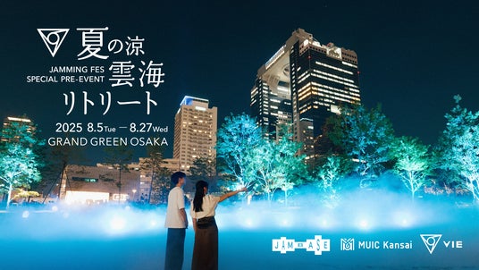 次世代型ウェアラブル脳波計の開発とニューロテクノロジーの社会実装を行うVIE株式会社(本社:神奈川県鎌倉市、代表取締役:今村 泰彦、以下「VIE」)は、JAM BASE(運営組織:一般社団法人コ・クリエーションジェネレーター)、MUIC Kansai(運営組織:一般社団法人関西イノベーションセンター)と共に、グラングリーン大阪にて、「JAMMING FES SPECIAL PRE-EVENT “VIE and MUIC presents 夏の涼:雲海リトリート”」を、2025年8月5日(火)~27日(水)の期間限定で開催いたします。