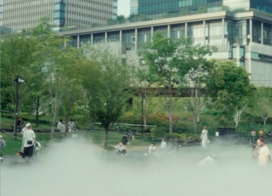 巨大な雲海が、グラングリーン大阪の水盤に出現
