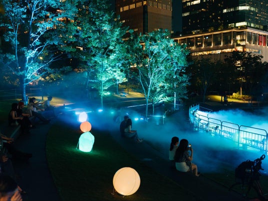 昼は開放的に水遊びで涼み、夜は幻想的な光と音による没入体験