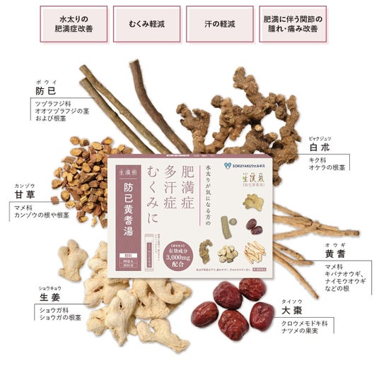 このたび、2015年発売以来、累計販売数量430万個(2025年6月弊社調べ)の「生漢煎シリーズ」から、むくみ・水太りに効く漢方肥満症薬第二弾「防已黄耆湯錠SX」の満量処方タイプ「防已黄耆湯顆粒<満量処方>」を2025年8月5日から新発売いたします。