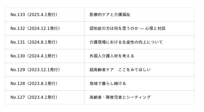 8月1日発行!介護を深掘りするマガジン『カイゴのチカラ』NO.134「特集 『こうなりたい』をかなえるための取組」のご案内とバックナンバーのご案内