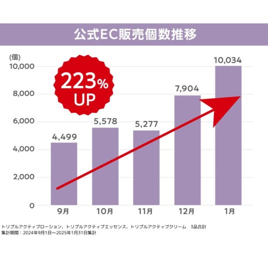 昨年9月にローンチした化粧水・美容液・クリームの3アイテムはSNSがきっかけで話題となり、欠品が続くほどの反響を呼びました。公式オンラインショップでは欠品期間もありながら、数か月で発売初月の2倍以上の販売個数を記録し、多くの方に「使いたい!」と思っていただけるブランドへと成長しています。