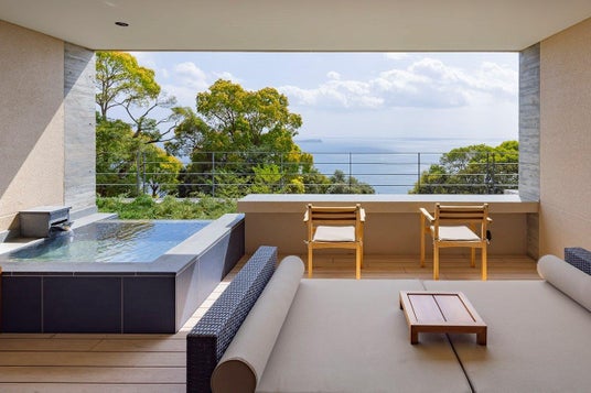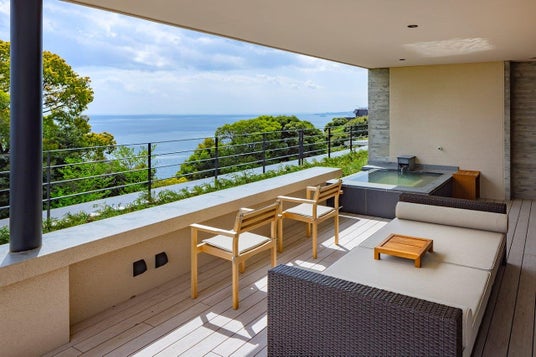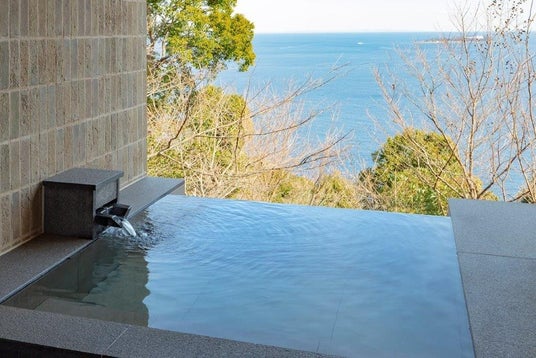 伊東・稲取の漁場で獲れる新鮮な魚介を活かした料理や、自然と調和した静かな時間。全客室には相模湾を望む天然温泉露天風呂を備え、波音と風の音に包まれながら心をほどく滞在をお楽しみいただけます。さらに、相模湾の水平線を望む屋外プールやプールサイドバーでは、夕暮れの海を眺めながら過ごす贅沢なひとときが広がります。