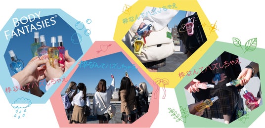 「ボディファンタジー」は、日常を彩るおしゃれな香りを手軽に楽しめるフレグランスブランドです。ティーンに人気のモモの香りや綿菓子のようにあまい香りのほか、かわいらしいフローラルやトレンドのティー系までバリエーション豊かにラインナップ。多彩な香りの中から、洋服を選ぶようにお気に入りの香りを見つける楽しさもお届けしています。