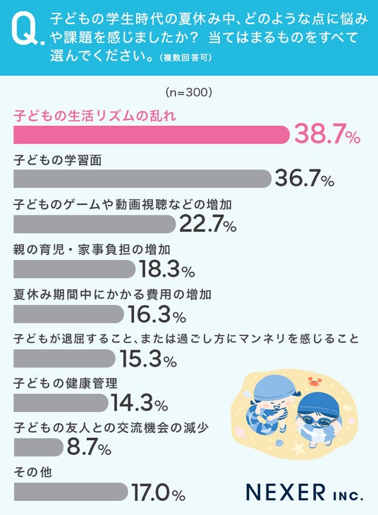■38.7%が、子どもの夏休み中「生活リズムの乱れ」に悩んだ