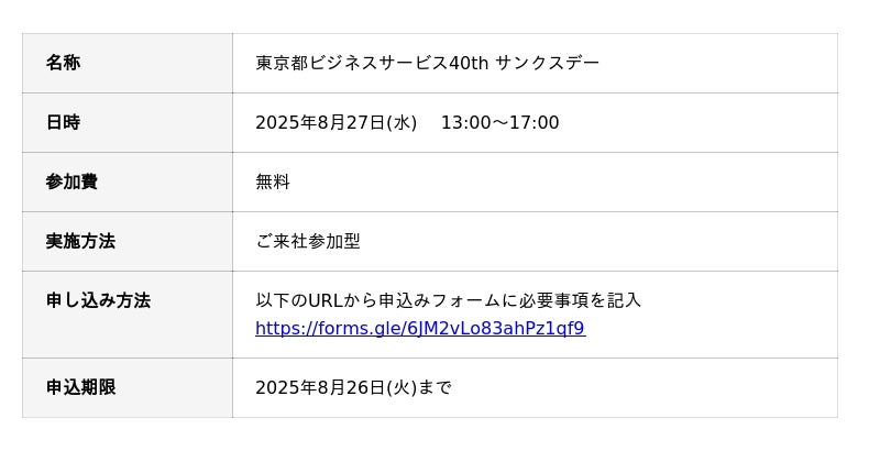 日時:2025年8月27日(水) 13:00~17:00 開催!場所:東京都ビジネスサービス本社(東京都江東区青海)