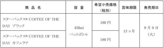スターバックス・コーポレーション(本社:米国 シアトル、CEO:ブライアン・ニコル)と、サントリー食品インターナショナル株式会社(本社:東京都、社長:小野真紀子)は、ペットボトル入りコーヒーの新シリーズ「スターバックス(R) COFFEE OF THE DAY ブラック」「同 カフェラテ」を、9月9日(火)から発売します。