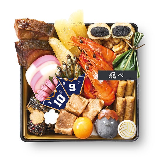老舗おせちメーカー「山福」と共同で豪華な三段重をオリジナル開発。アニメに登場する高校の各キャラクターをイメージしたおせち料理が盛りつけられ、「ハイキュー!!」の世界を堪能することができます。三段重にはオリジナルデザインの豪華特典付き。ここでしか手に入らないレアアイテムはファン必見です。