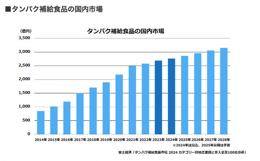 ※出典:(株)富士経済「タンパク質補給食品市場2024カテゴリー間格差要因と参入企業100社分析」より