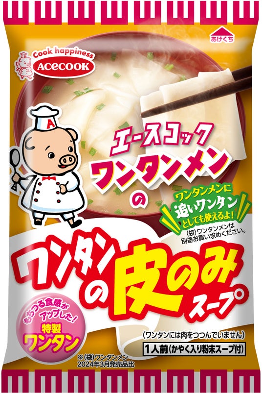 ワンタンメンのワンタンの皮のみスープ 新発売