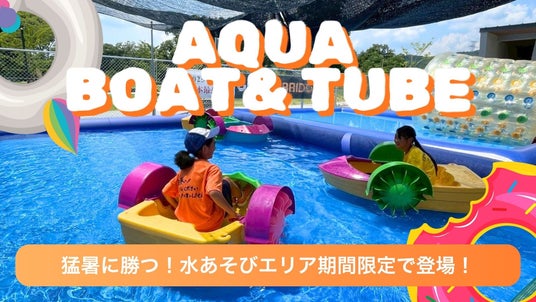 さらに園内エントランス付近ではヨーヨー釣りや、射的などの『子ども縁日』を開催。また『アクアエリア』には巨大プールを設置し、キッズ用ボートや、アクアチューブの中に入って水上を転がり、涼を感じるイベントも同時開催いたします。